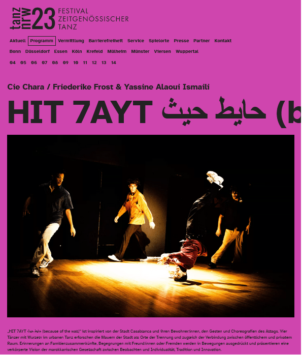 Mark your calendar: we will perform HIT 7AYT at the On Marche, Festival International de la danse contemporaine in Marrakech, as closing performance!